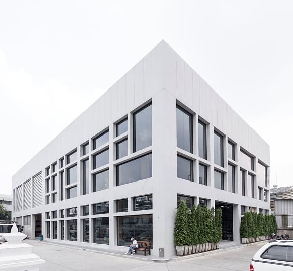 ภายใต้ความมีมีติของผนังสองเลเยอร์นี้แล้ว ยังแฝงไว้ด้วยประโยชน์ในแง่ของการเป็นช่องว่างที่เปรียบเสมือน Buffer Zone ที่ช่วยกรองความร้อนที่จะเข้าสู่ภายในอาคาร ทั้งยังช่วยระบายอากาศร้อนให้ลอยขึ้นสู่ที่สูง ทำให้อากาศเย็นไหลเข้ามาแทนที่ด้านล่าง ส่งผลให้พื้นที่บริเวณหน้าร้านเย็นสบาย ไม่ต้องเปิดเครื่องปรับอากาศ เสริมด้วยการแทรกพื้นที่สีเขียวในชั้นหนึ่งและพื้นที่ดาดฟ้าของอาคาร ช่วยให้อาคารกับธรรมชาติดูเป็นส่วนหนึ่งของกันและกัน