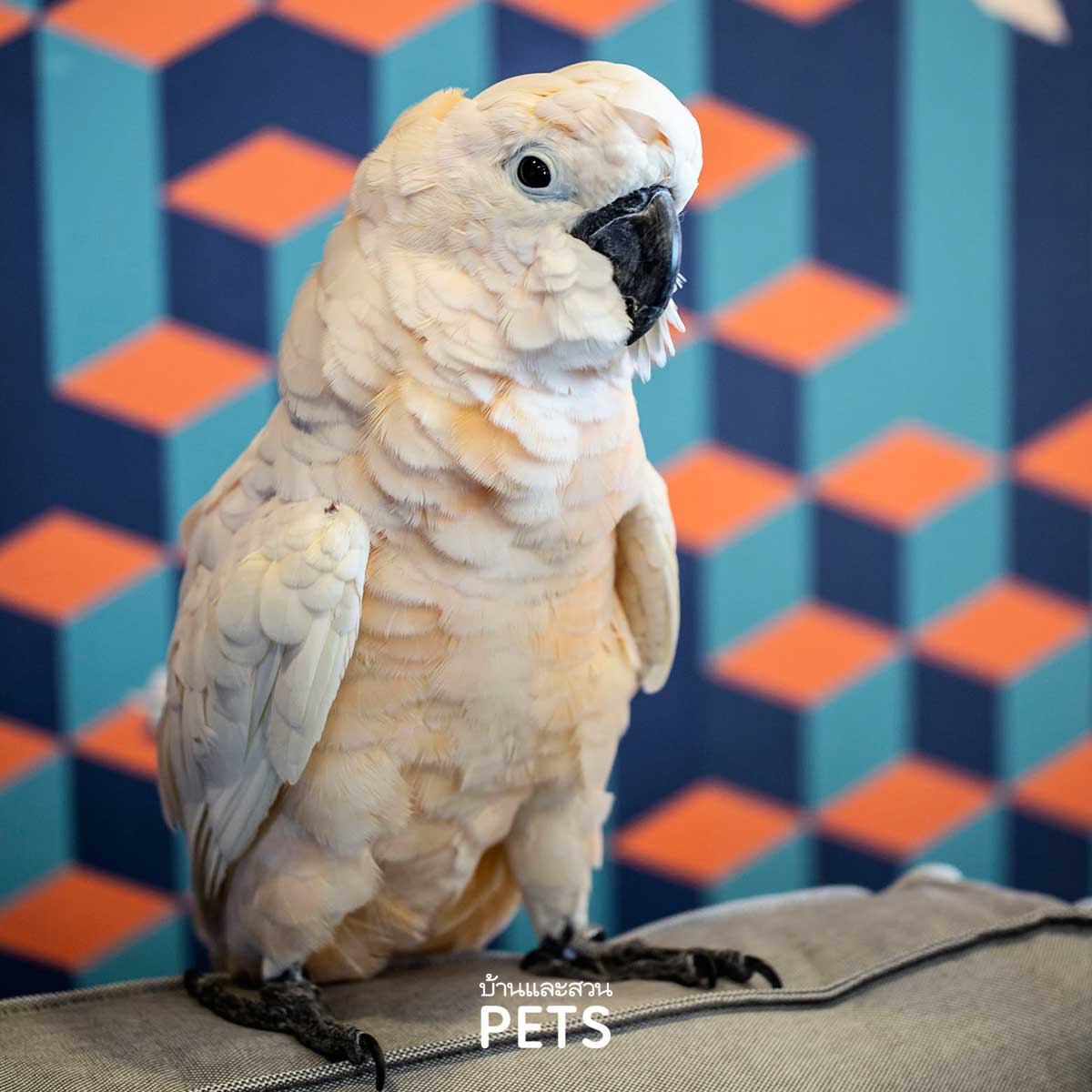 “แฮปปี้ เป็นนกตัวผู้ค่ะ เราจะรู้ว่านกเป็นเพศไหนจากกรุ๊ปเลือด ส่งเลือดไปตรวจก็รู้ มาทีแรกไม่มีขน อายุประมาณ 6 สัปดาห์ ขนยังไม่ขึ้นผิวหนังยังเป็นตุ่มๆ ยืนไม่แข็ง แต่พอโตขึ้นเขาขี้อ้อนมาก ตอนแรกก็ไม่คิดว่าจะมากขนาดนี้” คุณเพชรลดาเล่าต่อว่าได้รู้จักกับนกกระตั้ว หรือนกคอกคาทู (Cockatoo) ครั้งแรกจากบ้านของญาติแล้วตกหลุมรักความขี้อ้อน ฉลาด แสนรู้ ของเจ้านกชนิดนี้ จึงเริ่มศึกษาหาข้อมูลเพื่อเลี้ยงในคอนโดมิเนียม