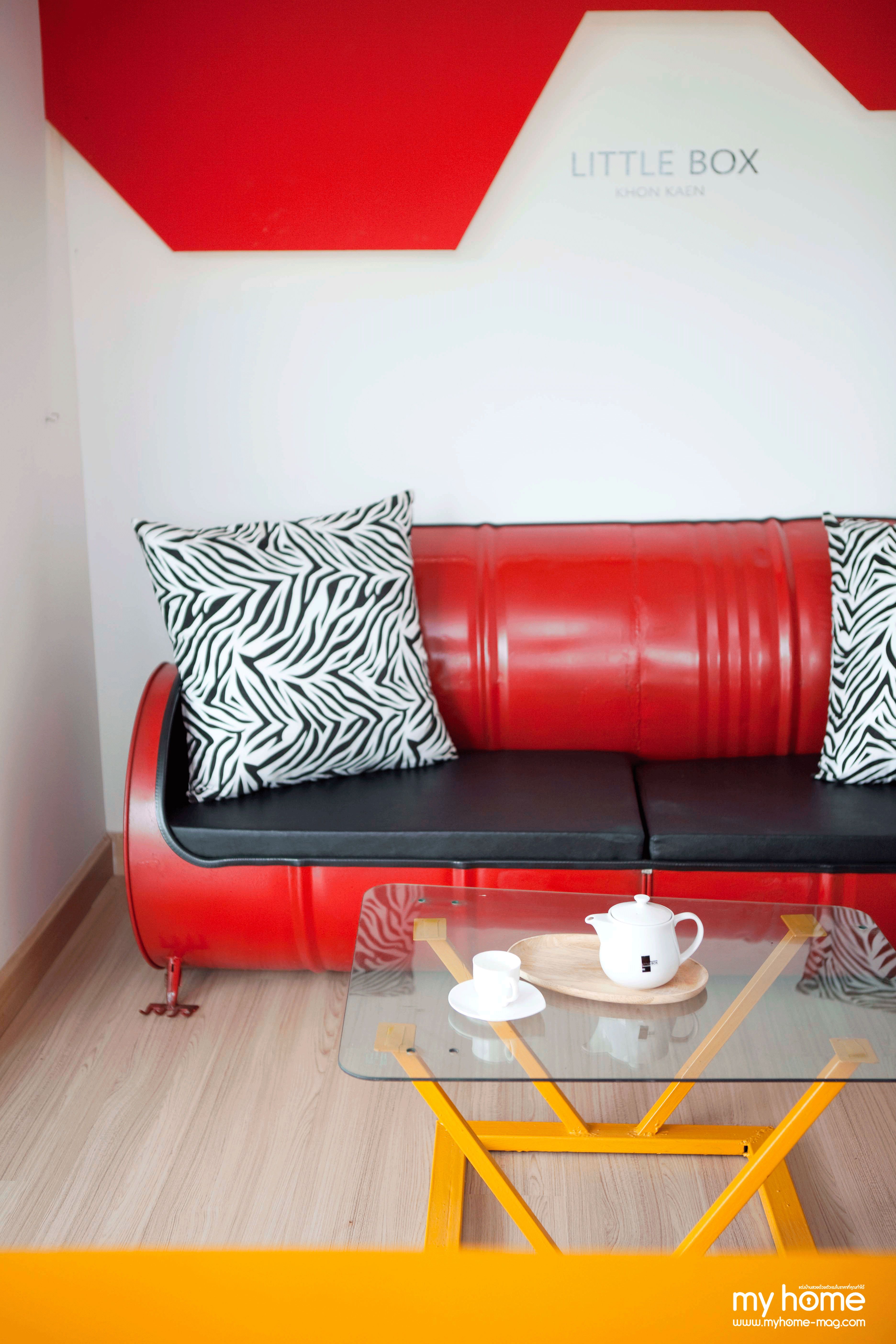 - ไอเดียการประดิษฐ์เฟอร์นิเจอร์ของเจ้าของให้ดูสวยและน่าใช้งานเช่น เก้าอี้จากถังน้ำมันเก่าทำสีแดง