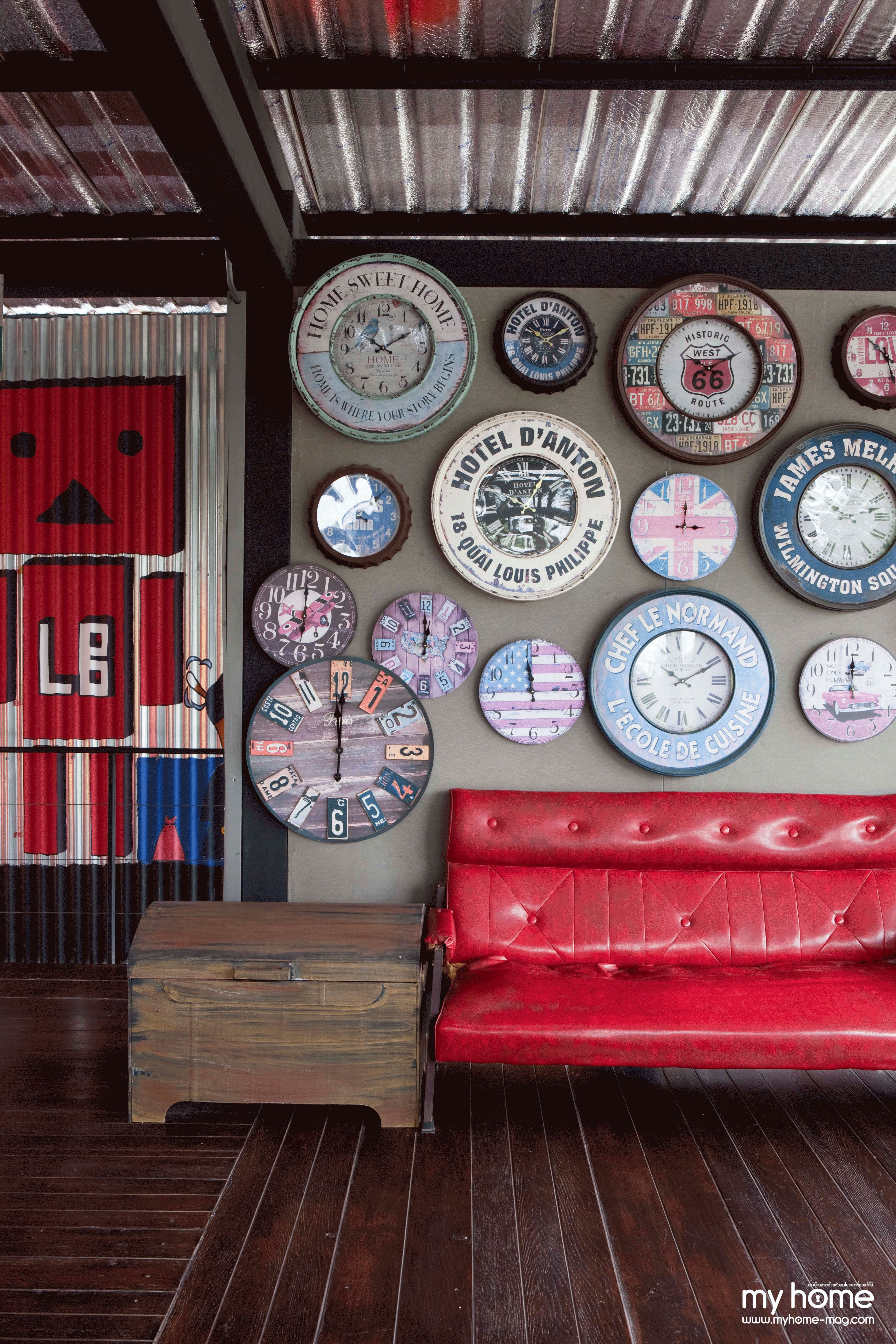 การตกแต่งภายในเป็นการนำวัสดุที่หาได้ในท้องถิ่นมาใช้ รวมไปถึงของเก่า หรือของ DIY ที่เจ้าของลงมือทำด้วยตัวเอง “เฟอร์นิเจอร์ ส่วนใหญ่เป็นของเก่าของคุณปู่คุณย่า และบางชิ้นผมก็หาซื้อมาจากร้านขายของเก่า แล้วนำมาจัดวางในแต่ละมุม ให้มีจุดดึงดูด เช่น ทีวี จักรยาน เฟอร์นิเจอร์สีสดๆ มาจัดวางให้ดูน่าสนใจ แปลกใหม่ และ