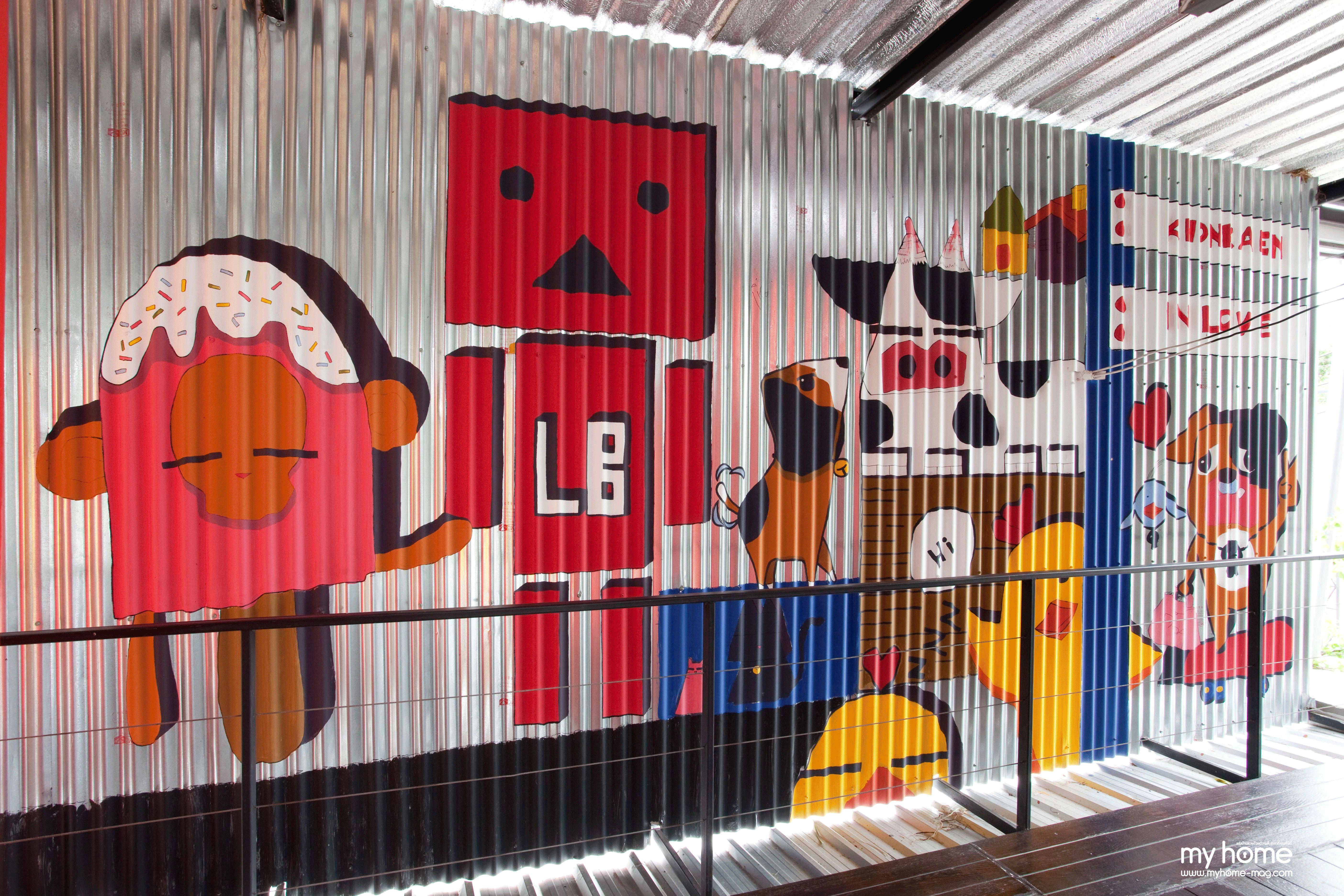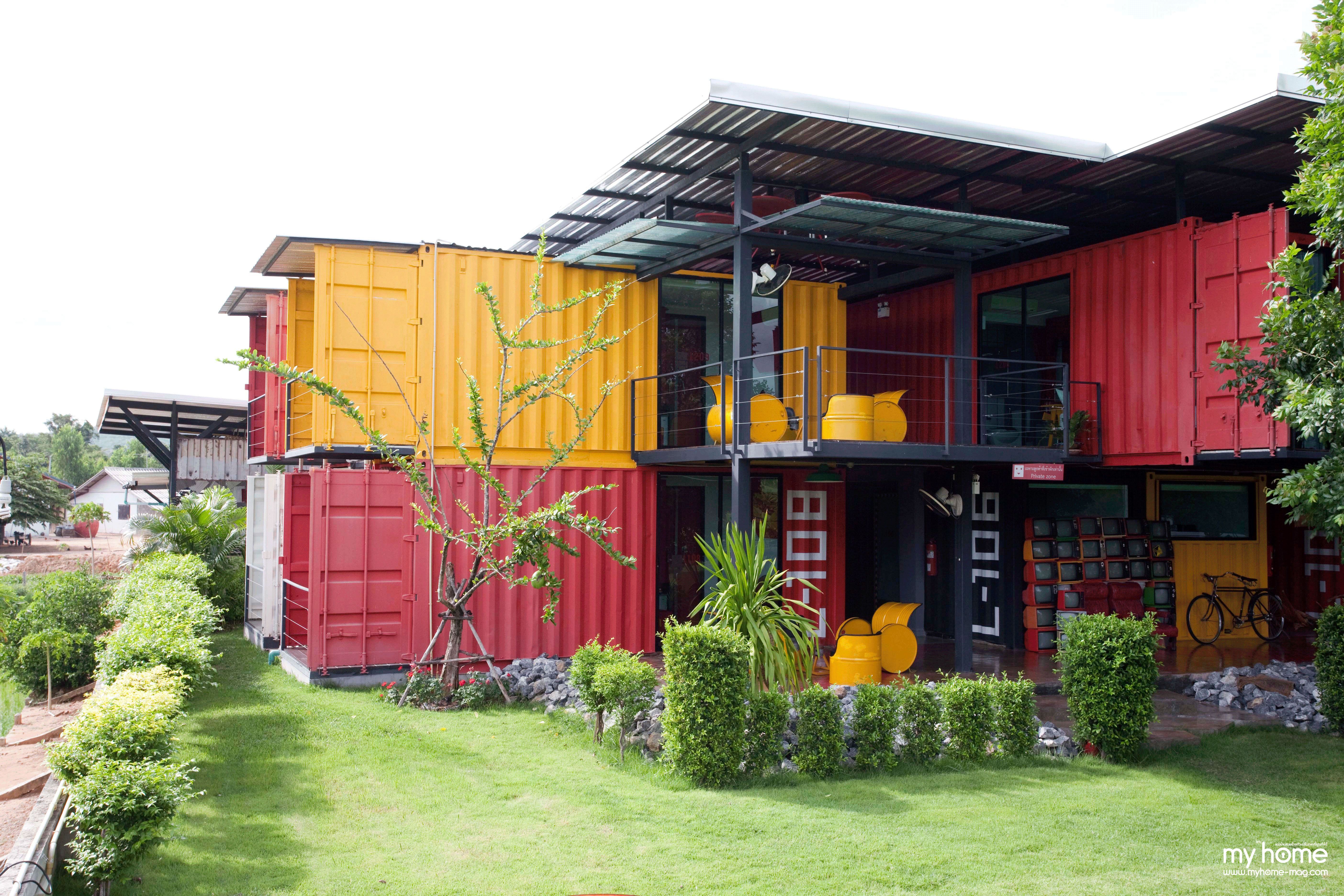 “บังเอิญช่วงที่ผมทำกระแสการสร้างบ้านด้วยตู้คอนเทนเนอร์กำลังมาพอดี และผมคิดว่ามันน่าจะเป็นไปได้ จึงออกแบบตู้คอนเทนเนอร์ให้เป็นอาคาร 2 ชั้น แบ่งสัดส่วนให้มีพื้นที่สีเขียว มีลานกิจกรรมกลางแจ้งไว้ให้พักผ่อนหรือจัดปาร์ตี้บาร์บีคิวมื้อเย็นกับเพื่อนฝูง อีกทั้งยังเป็นพื้นที่ที่สามารถรองรับกลุ่มใหญ่ๆ ได้อีกด้วย”