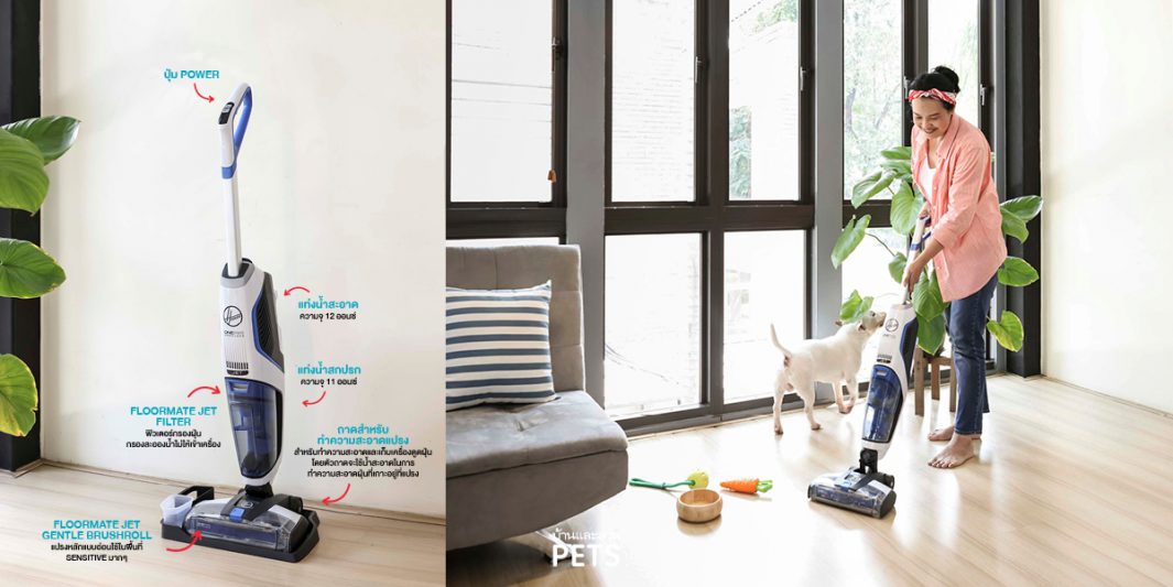 วันนี้บ้านและสวน Pets จะมา รีวิว Hoover JET เครื่องดูดฝุ่นและถูพื้นแบบไร้สาย 3 IN 1 สะอาดด้วยการทำความสะอาดเพียงขั้นตอนเดียว ไอเท็มเด็ดที่จะมาเป็นผู้ช่วยในการทำงานบ้านให้รู้จักกันค่ะ แน่นอนว่าหลายบ้านที่มีปัญหาในเรื่องการทำความสะอาด ไม่ว่าจะเป็นบ้านที่มีเด็กเล็ก หรือบ้านที่มีสัตว์เลี้ยง แต่ที่สำคัญที่สุดคือไม่ค่อยมีเวลาในการทำความสะอาดมากนัก เพราะการทำงานบ้านแต่ละทีก็มีหลายขั้นตอน ทั้งเก็บ กวาด เช็ด ถู เรียกว่าใช้เวลาไม่น้อยเลยทีเดียว ยิ่งคนรุ่นใหม่ส่วนใหญ่ต้องออกไปทำงานนอกบ้าน กว่าจะกลับถึงบ้านก็แทบหมดเวลาและหมดแรงแล้ว