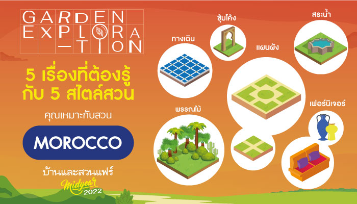 ความโดดเด่นของสวนโมร็อกโกคือการรวมเอาความสวยงามของสวนแบบอาหรับ ฝรั่งเศสและสเปนมาผสมกันได้อย่างกลมกล่อม ออกมาเป็นสวนขนาดกระทัดรัดแต่อัดแน่นไปด้วยสีสันและเอกลักษณ์ทางวัฒนธรรมมากมายที่สามารถจับมาใส่ผสมกันได้ไม่ยาก ซึ่งส่วนใหญ่มีลักษณะเป็นคอร์ทยาร์ดที่เชื่อมต่อหรือเป็นสวนหนึ่งกับภายในอาคาร