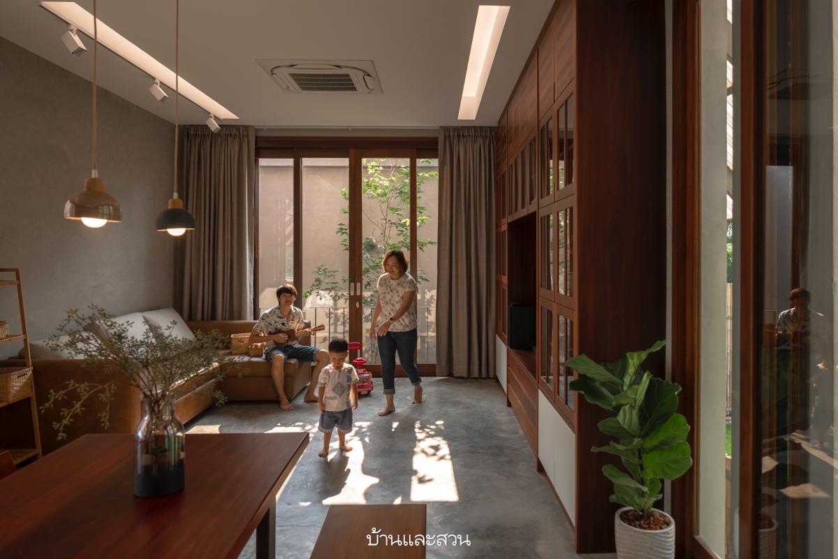 เป็นบ้านที่มีการออกแบบ “ที่ว่าง” อย่างน่าสนใจ สร้างการเชื่อมโยงในทุกมิติอย่างรอบด้าน เป็นทั้งช่องลมที่อากาศไหลผ่านสร้างความสบาย เปิดมุมมองให้ครอบครัวมีปฏิสัมพันธ์อย่างอบอุ่น แต่ก็เว้นระยะให้เป็นส่วนตัวรู้สึกปลอดภัย และเผยความงามของสัจจวัสดุเมื่อแสงกระทบผ่านมวลอากาศและแพตเทิร์นช่องลม >> อ่านต่อ