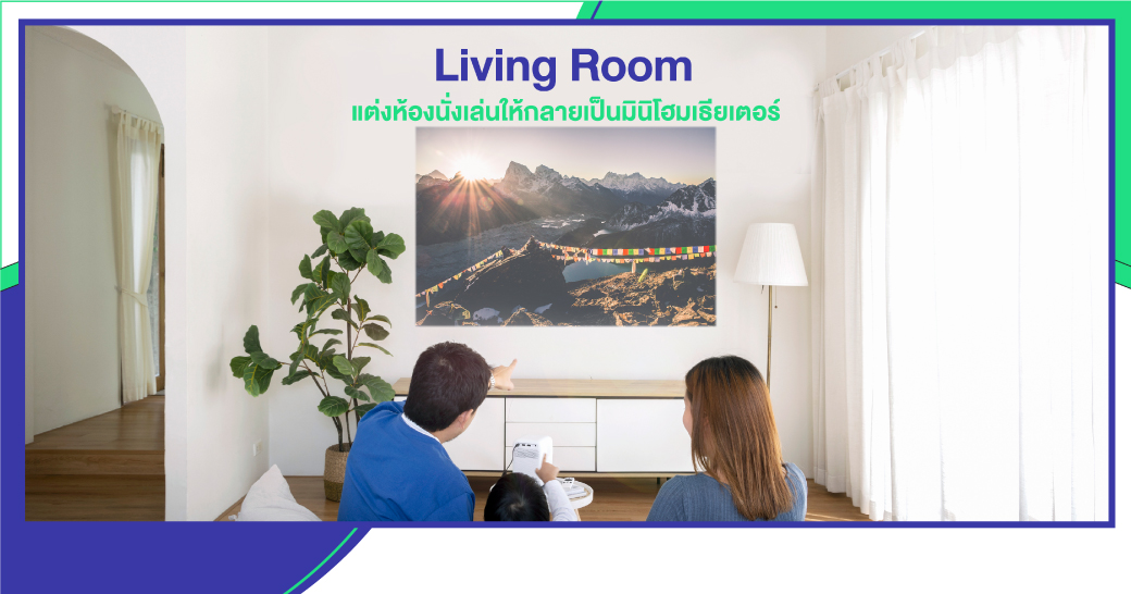 1. Living Room แต่งห้องนั่งเล่นให้กลายเป็นมินิโฮมเธียเตอร์