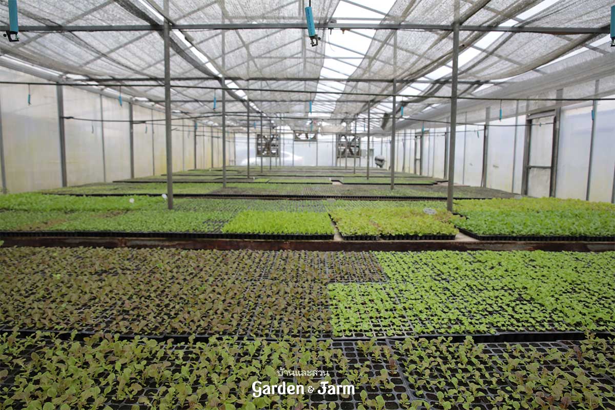 ผักสลัดต้องการแสงในการเจริญเติบโตค่อนข้างมาก เมื่อต้นผักได้รับแสงไม่เหมาะสมย่อมส่งผลต่อผลผลิต ฟาร์มของเราปลูกผักสลัดในโรงเรือนระบบเปิดที่มีเพียงหลังคาโปร่งแสงช่วยกันฝน ส่วนด้านข้างเปิดโล่ง ปัญหาหลักเรื่องแสงที่เราพบก็คือ แสงแดดจัดในช่วงหน้าร้อน ป้องกันโดยใช้ซาแรนช่วยกรองแสง ส่วนช่วงหน้าฝนที่เชียงใหม่มักมีปัญหาแสงแดดไม่เพียงพอ วิธีแก้เบื้องต้นคือทำความสะอาดตัวหลังคาพลาสติก เก็บซาแรนพรางแสงที่ขึงไว้ในช่วงหน้าร้อนออก และเพิ่มกำลังการผลิตเพื่อให้มีผลผลิตเพียงพอ แต่เวิร์สเคสจริง ๆ คือเรายังไม่สามารถเพิ่มปริมาณแสงในช่วงหน้าฝนได้ แม้จะทำได้ด้วยการใช้แสงเทียม แต่เรายังไม่ติดตั้งระบบนี้เนื่องจากต้องลงทุนพอสมควร